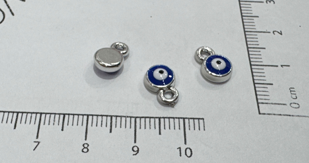 Dije Plástico Metalizado Esmaltado 6 - Circulo Mini Ojito Turco - 20u