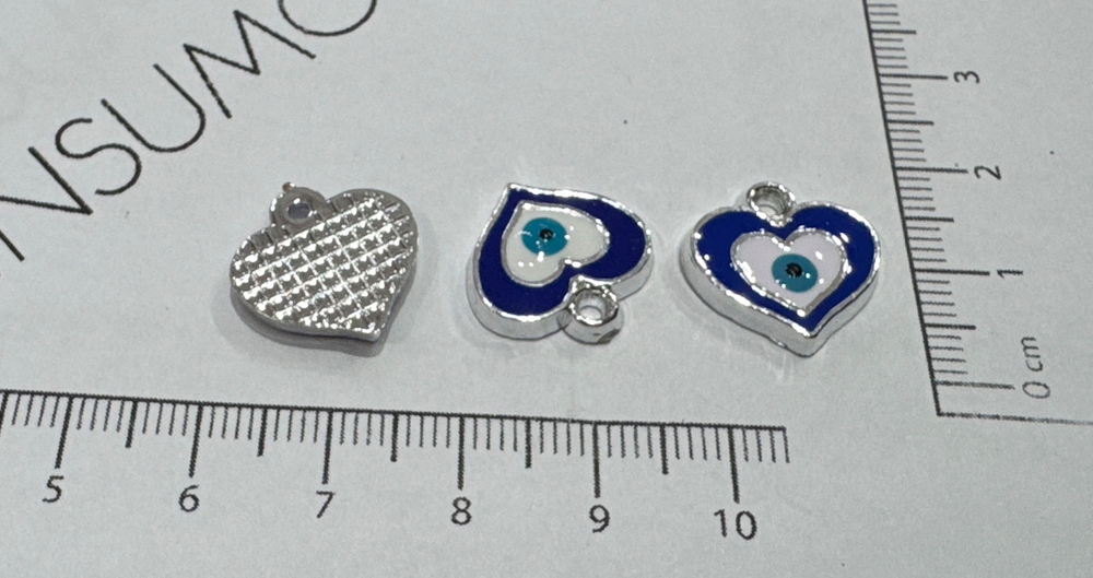 Dije Plástico Metalizado Esmaltado 8 - Corazon Ojito Turco con Celeste - 20u
