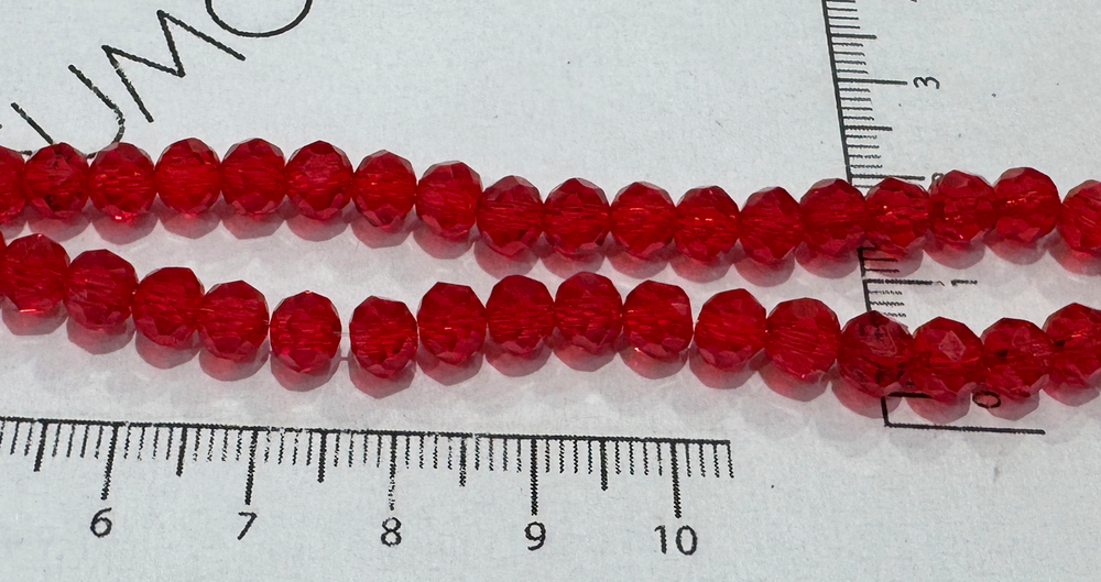 Tira Vidrio Facetada 6mm 175 - Rojo Cherry Traslucido - 10 Tiras