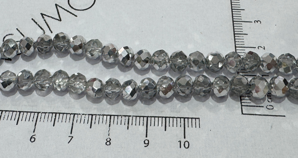 Tira Vidrio Facetada 6mm 173 - Plateado + Transparente - 10 Tiras