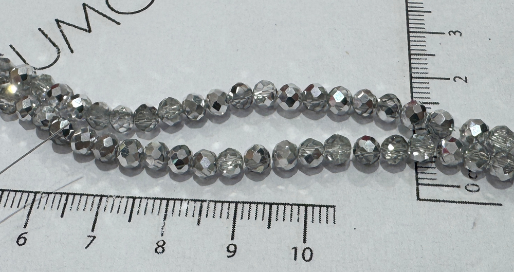 Tira Vidrio Facetada 4mm 59 - Plateado y Transparente - 10 Tiras